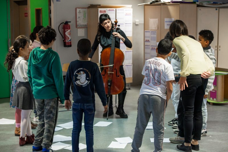 Avec le soutien de la SACEM, Harmonie Deschamps (chanteuse, artiste compagnon) et Elodie Poirier (violoncelliste) ont mené une série d'ateliers avec une classe de CM1 de l'école élémentaire Saint-Exupéry de Pantin, dans lesquels les enfants ont composé leurs propres chansons, mêlant musique baroque, chansons et airs traditionnels de musique du monde.