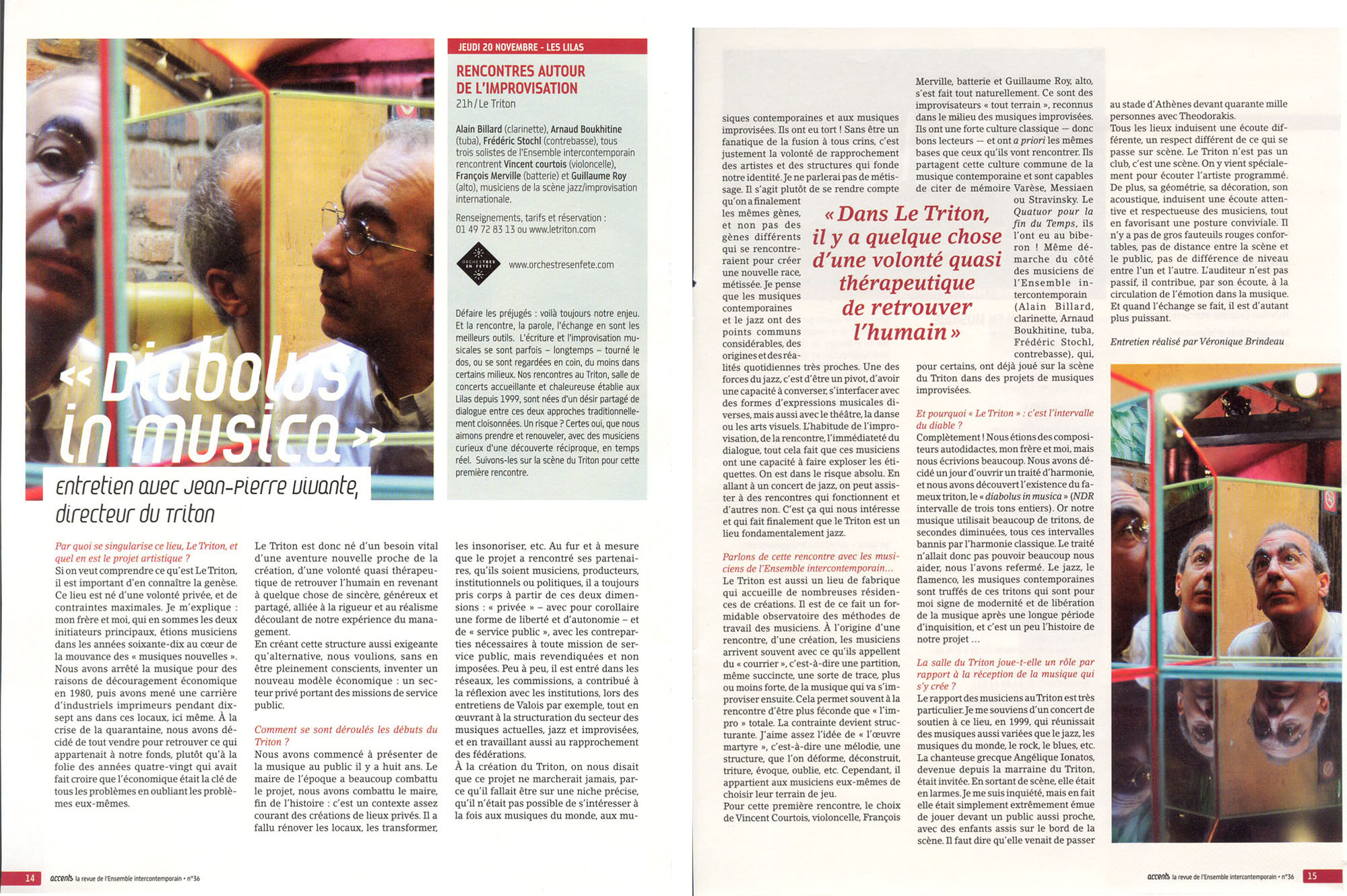Entretien de Jean Pierre Vivante, réalisé par Véronique Brindeau pour la revue de l'Ensemble intercontemporain, Transmettre.