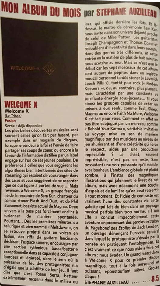 Welcome-X en sélection « Album du Mois » dans le dernier Rock Hard Magazine (mars 2019)