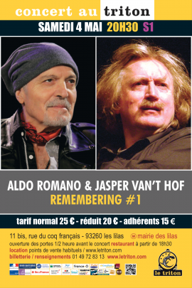 "En ce temps-là, je jouais avec Jean-Luc Ponty, créateur incontournable du jazz au violon. Je le rejoins en Hollande pour une tournée. Aux claviers il y a un jeune homme, très drôle, plein de vie, entouré de machines électroniques, dont il tire des sons inédits. Moi qui préfère plutôt les sons acoustiques, j’ai été fasciné par son jeu. Pour le concert de ce soir, je suis heureux de vous présenter ce duo avec Jasper van ‘t hof." Aldo Romano
