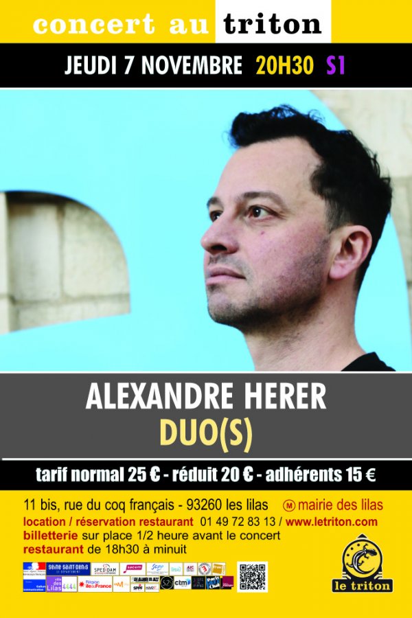"J’aime à la fois l’intimité du duo et la liberté qu’elle procure. J’aime aussi la relation particulière avec l’autre. Alors j’aime la multiplier, au sein de plusieurs duos, qui sont souvent des émanations, des extractions d’autres groupes. Ces duos ont été initiés de façon naturelle : jouer en duo avec Julien Pontvianne ou Juliette Meyer impose le minimalisme, l’espace et la recherche de textures sonores, autour d’éléments souvent improvisés, parfois écrits. Avec Mailys Maronne, nous avons cherché à creuser cette complémentarité, entre deux instruments à clavier, que nous développons au sein de la Fanfare XP. Avec Devin Gray, c’est plutôt l’urgence de l’interaction à travers des grooves improvisés et des textures sonores coloristes. J’ai naturellement eu envie de réunir ces duos dans une soirée, et si tout le monde est présent, je ne peux pas résister à créer d’autres rencontres entre les musiciens, créer un regroupement de duos pour d’autres interactions." Alexandre Herer