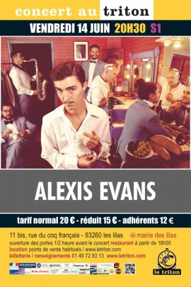 Alexis Evans arrive décomplexé avec un band au charme rétro dont la réputation n’est plus à faire ! Cet artiste à la voix chaude irrésistible maîtrise son show et vous attire dans ses filets doucement et gentiment. Mais tout cela pour mieux vous conquérir et vous finir sur le dancefloor en mode Rock’n’Roll ! Préparez-vous à une décharge d’énergie contagieuse !