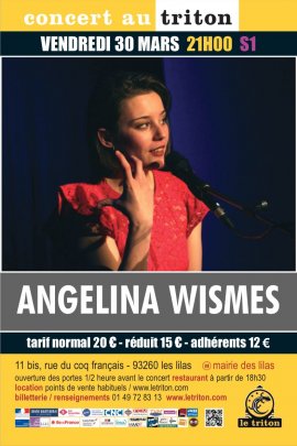Depuis deux ans, la jeune et lumineuse Angelina Wismes est une incontournable de la scène du Triton. Tous les ans, notamment à l’occasion du festival les Enchanteuses, elle revient avec de nouvelles idées, de nouvelles envies. Après nous avoir enivrés de son somptueux hommage à Barbara, après nous avoir fait voyager à travers le monde au rythme de certains des plus beaux tubes de la variété internationale, après nous avoir conquis en interprétant en français un classique de Léonard Cohen, Angelina est ce soir de retour au Triton pour nous présenter un répertoire fait d’autant de reprises que de compositions personnelles. Entre chansons françaises, ambiances jazzy et couleurs world, tantôt seule en piano-voix, tantôt au micro accompagnée de son pianiste préféré, Angelina a à cœur de nous transporter, une nouvelle fois, dans son monde poétique et lyrique.