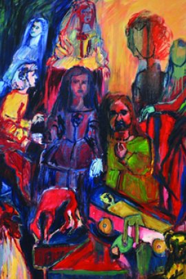 De la boîte crânienne au cercueil, de la mise en bière à la mise en boîte, le tableau devient fenêtre par le jeu de mise en perspectives successives : de multiples espaces s’offrent au regard comme autant de points de vue ou passages vers d’autres mondes, en un enchevêtrement de scènes, évoquant librement la première Renaissance italienne. Un travail en engendre un autre, cédant au suivant quelques figures de sa composition en une répétition nullement itérative, mais plutôt orientée vers l’avant comme le passage du relais dans une course en équipe. » Anne Loubry