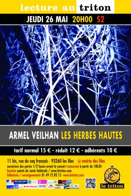 Pour clore sa résidence d’écrivain au Triton, Armel nous présente ce soir une lecture à deux voix de sa dernière pièce “Les herbes hautes”...