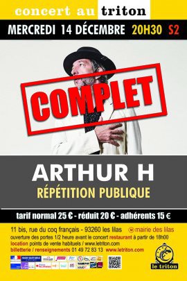 Deux mois avant le début de sa grande tournée, Arthur H a choisi de répéter son nouveau spectacle au Triton ! C’est pour nous un immense bonheur de retrouver ce magnifique artiste, qui nous avait déjà fait l’honneur de venir enregistrer son tout nouvel album dans notre studio en début d’année. Entouré de Nicolas Repac à la guitare, Raphael Seiguinier à la batterie et Pierre Le Bourgeois au violoncelle, Arthur H vous invite dans les coulisses du chantier de ce nouveau spectacle haut en couleurs. Expérimentation, fragilité, exercice d’équilibriste sans filet. Ce soir, on vous ouvre les portes de cette répétition publique d’un autre genre.
