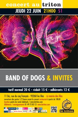 En 2015, nous avons donné “quarte” blanche à Jean-Philippe Morel et Philippe Gleizes autour de l’idée d’un duo, Band of dogs, qui invite à chaque concert un soliste différent, issu du monde du jazz et des musiques dites progressives. Pendant plus d’un an et demi, nous avons donc vu nos deux “chiens enragés” convier à tour de rôle des musiciens géniaux, tous particulièrement habitués des scènes du Triton. Ainsi, se sont succédés Médéric Collignon, Marc Ducret, Vincent Peirani, Emile Parisien, Aymeric Avice, Thomas de Pourquery, Hugues Mayot et Bruno Ruder. Chaque concert a donné lieu à un enregistrement dont les meilleurs moments ont été minutieusement réunis et concoctés pour donner corps au disque que nous sommes heureux et fiers de présenter ce soir. Pour célébrer la sortie de ce premier opus du duo Band of dogs, plusieurs participants de l’aventure ont répondu présent pour un concert all-stars qui promet d’immenses surprises !