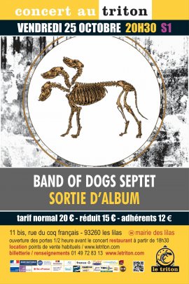 En 2015, nous avons donné quarte blanche à Jean-Philippe Morel et Philippe Gleizes autour de l’idée d’un duo, Band of dogs, qui invite à chaque concert un soliste différent, issu du monde du jazz et des musiques dites progressives. Ainsi les huit premières rencontres (avec Médéric Collignon, Marc Ducret, Vincent Peirani, Emile Parisien, Aymeric Avice, Thomas de Pourquery, Hugues Mayot et Bruno Ruder) ont donné lieu à la parution d'un premier album sur notre label en juin 2017. Depuis, Band of dogs a poursuivi son travail sur nos scènes en invitant successivement Andy Emler, Elise Caron, Antonin Rayon, Théo Ceccaldi et Gilles Coronado. Ce soir, c'est le second opus du duo Band of dogs, fruit de ces cinq nouvelles rencontres inédites, que nous sommes heureux de vous présenter en compagnie de l'ensemble des artistes qui y ont contribué !
