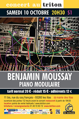 « Le piano est fait de cordes, de feutrine, de métal, de marteaux, de touches, de résonateurs. Le synthétiseur modulaire est fait d’oscillateurs, de filtres, de contrôleurs, de séquenceurs, de délais, de modulateurs en anneaux, de circuits intégrés et de câbles. Quels mondes sonores et poétiques peuvent résulter de la confrontation de ces deux machines ? Voici l’univers excitant et prometteur que je me propose d’explorer dans ce nouveau projet. Programmation, chaos, flux d’information, geste musical, composition, improvisation sont autant d’outils à ma disposition pour tenter de révéler la substance organique qui se cache dans cet assemblage. Piano Modulaire ou la rencontre électro-acoustique de mes deux instruments de prédilection : le piano et le synthétiseur modulaire. » Benjamin Moussay