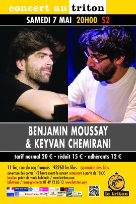 « Dès ma première rencontre avec Keyvan Chemirani il y a quelques années, j'ai tout de suite été fasciné par l'univers musical qu'il propose : science du rythme, sensualité du timbre, art du discours. Une rencontre dans l'intimité acoustique du duo s’imposait... Au programme, des compositions de chacun, terrains de jeux et de découverte flirtant parfois avec l’orient ou la musique contemporaine et surtout le plaisir jubilatoire de la transe, d’improviser et d’explorer ensemble de nouveaux chemins de traverse. » Benjamin Moussay