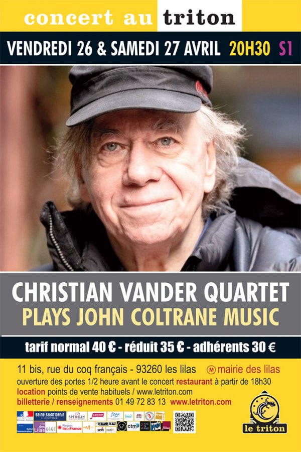 « Le 17 juillet 1967 le temps s’est arrêté… A l’âge de 40 ans, le grand saxophoniste John Coltrane nous a quittés. J’ai eu la chance de découvrir très jeune ce musicien exceptionnel, la beauté, la spiritualité, la force et aussi la fragilité de ses notes. L’expression de ce son envoûtant qui me parlait comme une voix. Dès ce moment il est devenu mon pain quotidien. Indispensable. Nul ne peut ignorer aujourd’hui l’immensité de son œuvre visionnaire. Elle résonne encore sur toutes les musiques d’aujourd’hui et certainement de demain. » Christian Vander Le batteur mythique de Magma développe avec son quartet une sonorité très personnelle, dense, intense, à travers des interprétations pleines d'émotion et de ferveur de la musique d'Elvin Jones, le batteur légendaire de John Coltrane. Attention, swing à l'extrême !