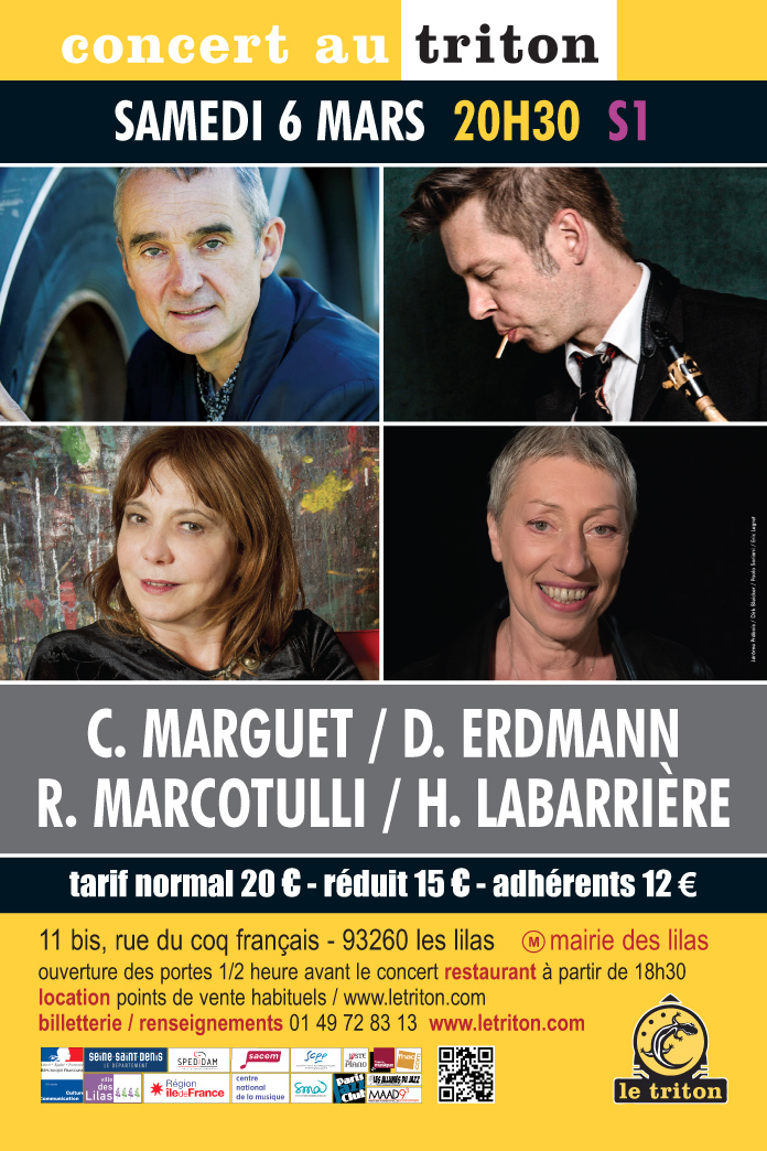 Daniel Erdmann et Christophe Marguet prolongent leur association en invitant deux figures majeures de la scène du Jazz Européen : Rita Marcotulli et Hélène Labarrière. Cette nouvelle collaboration est totalement inédite, elle est née du désir de confronter les univers de chacun, ainsi que de rassembler ces personnalités fortes et marquantes du jazz contemporain. Chaque membre