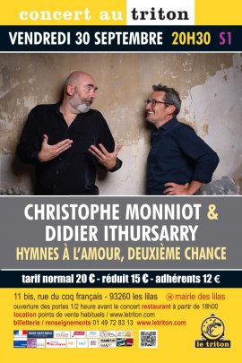 « Duo débat de Christophe Monniot et Didier Ithursarry. Jamais à bout de souffle, ces deux-là ne manquent pas d’air, l’anche battante de l’un répondant aux anches libres de l’autre. Leurs musiques nous emportent, se forment, enflent et s’amenuisent au gré des vents, glissant comme le blanc des nuages au ciel d’un bel azur. Ithursarry. Didier. C’est bien connu, l’accordéon colle aux basques ! Depuis si longtemps qu’il le presse dans ses bras, l’enlace, le gonfle et le dégonfle, souffle au cœur... À l’âme. À lames ! Didier est, actuellement et sans conteste, l’un des plus valeureux et lumineux “allumés du dépliant”, de la “boîte à frissons”, de la “boîte à punaises”. Un de ces “besogneux du dépliant”, termes chers à Jo Privat. Maître d’art en la matière, il en écrit de singulières nouvelles pages qui ne ressemblent à rien tant qu’à lui-même. Et c’est heureux. Monniot. Christophe. Sa musique étincelle comme son instrument d’or dans la lumière des scènes. Virtuose éblouissant au phrasé sensible, à la sonorité à nulle autre pareille, il souffle davantage encore sur les braises qu’entretient l’accordéon de Didier, au poumon inépuisable. De leur forge, du métal chauffé à blanc s’échappent, en fumeroles, leurs mélodies. Ils les façonnent, les modèlent. Elles nous emportent avec elles... Avec ailes ! Tel le foie et le confit dans la toupine, les deux amis font bloc. Dans leur mêlée liée serrée, épaule contre épaule, ils font corps, inventant tout à la fois leur musique et leur genre musical. Assurément voilà une très belle œuvre. Je ne me lasse de l’écouter, la réécouter... Vous en ferez de même. » Marc Perrone