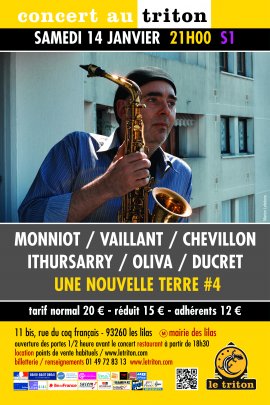 Tout au long de l’année 2016, le saxophoniste Christophe Monniot a été en résidence au Triton accompagné de ses compères de trio, Bruno Chevillon et Franck Vaillant.