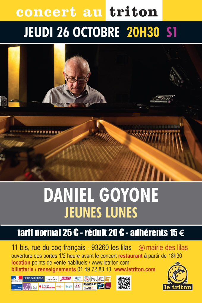 « Ce concert sera axé autour du répertoire de mon nouvel enregistrement, Jeunes Lunes, paru en Mai 2023. Une aventure musicale en 10 épisodes commencée en 1982, poursuivie avec les premiers enregistrements de Label Bleu et aujourd’hui en autoproduction avec le soutien de Musicbox Publishing. Une musique dans laquelle rythmes et mélodies se conjuguent pour créer des univers uniques, servie par un trio de rêve. Des compositions dans lesquelles l’interprétation vise à atteindre le naturel de l’improvisation, et des improvisations qui s’intègrent aux compositions. J’ai conçu ces Jeunes Lunes comme des graines de rêve. Avec toute la fragilité des rêves et toute la force de vie enclose dans une graine. » Daniel Goyone