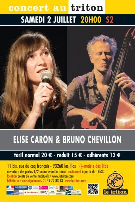 Vous vous dites peut-être que vous les avez déjà vu ensemble sur scène... et pourtant c’est bien la première fois qu’Elise Caron et Bruno Chevillon se retrouvent en duo, pour une “rencontre” donc des plus évidentes. Pour ce faire, ils ont naturellement choisi le Triton, lieu de liberté et d’expérimentations où l’un et l’autre ont, depuis quinze ans, réalisé leurs rêves les plus fous. Cette fois, ils nous font le plaisir de mêler leurs cordes respectives dans une formule inédite et intimiste, où l’improvisation, l’audace et l’émotion seront sans aucun doute les maîtres mots.