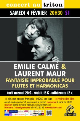 Prenez deux instruments rarement associés, la flûte et l’harmonica, confiez-les à des imaginations inspirées, instaurez entre elles une complicité, un présent et un futur en train de s’inventer et vous obtenez un disque au charme persistant, tout d’intelligence et de raffinement. L’improbable évoqué dans le titre tient sans doute dans l’harmonie trouvée entre les souffles conjugués d’Emilie Calmé et de Laurent Maur ; il est aussi ce curieux empilement de hasards et de caprices qui fondent les affinités entre deux êtres. Quant à la fantaisie, elle s’exprime partout, dans l’élan spontané vers ce qui semble bon et en accord avec l’instant, qu’il s’agisse d’inflexions rappelant la musique indienne ou de volutes Debussystes, de Blues du macadam, d’un vol plané synthétique à la Blade Runner ou d’une valse d’antan. Au simple dialogue se substitue une logique amoureuse d’entrecroisements, enlacements et délassements, non exempts d’humour et de petits mouvements d’humeur gamins ou boudeurs. La poésie qui s’en dégage est joueuse, folâtre, insouciante et heureuse. On avait beau connaitre la stature de Laurent Maur et deviner ce qu’Emilie Calmé pouvait, ce premier album en duo constitue une ravissante surprise.