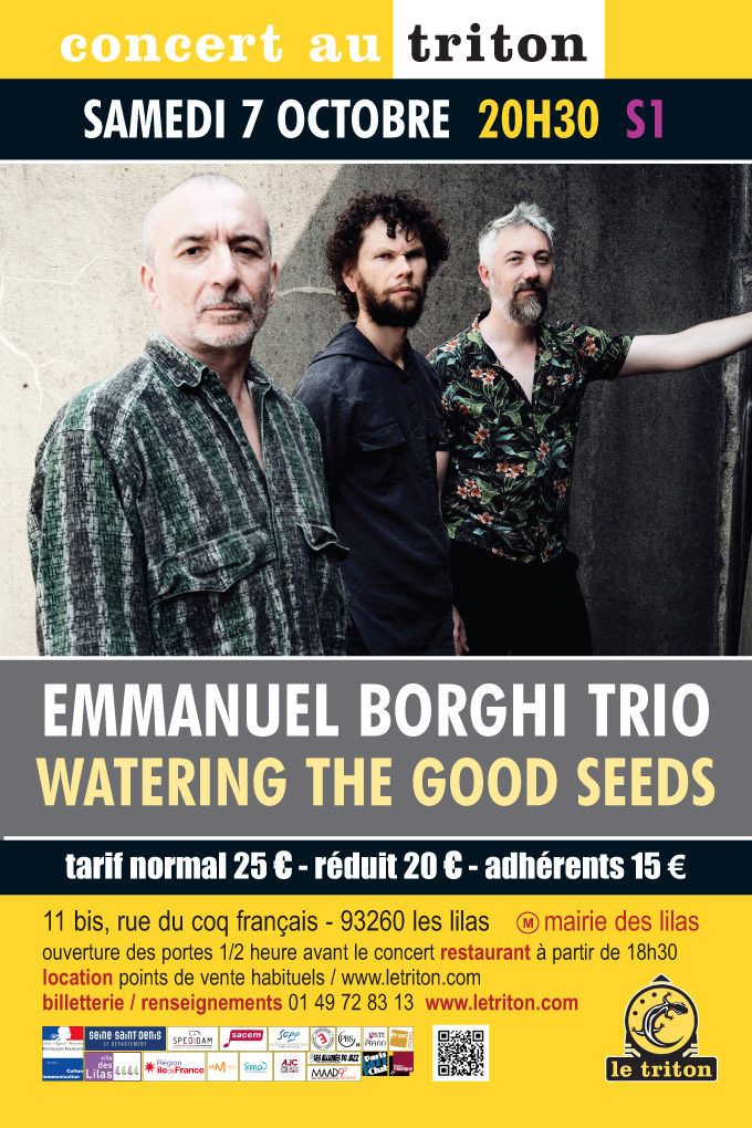 Il y a un an, notre ami et compagnon Emmanuel Borghi enregistrait "Watering the good seeds", un album en trio paru sur notre label. Un disque très largement salué par la presse spécialisée comme un beau joyau, innovant et rafraîchissant Ce soir, il est de retour avec ses camarades de jeu avec ce magnifique répertoire dans ses valises. L'occasion pour tous ceux qui avaient manqué le concert de sortie d'album de découvrir cet univers captivant et passionnant. Et pour tous les autres de revenir, bien entendu !