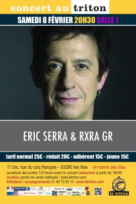 Eric Serra et son groupe le RXRA Group viendront présenter au public du Triton une vision jazz / pop fusion de ses plus belles musiques de films : Subway, Le Grand Bleu, Nikita, Léon, Le Cinquième Element, James Bond / GoldenEye, Arthur et les Minimoys.