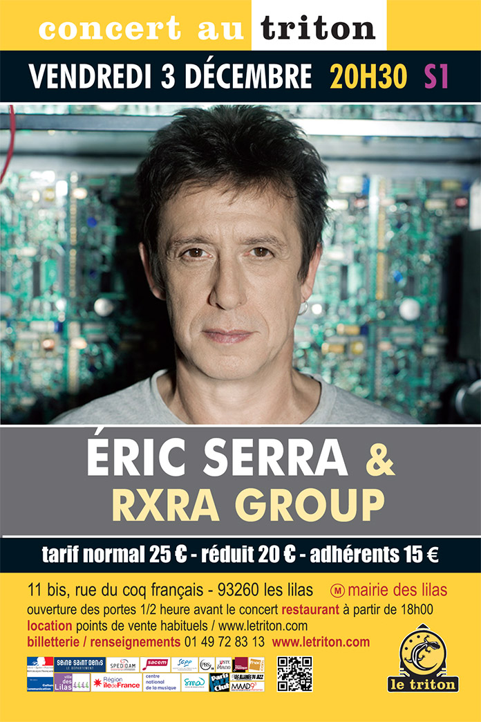 Éric Serra revient au Triton avec son groupe le RXRA Group pour présenter une vision jazz / pop fusion de ses plus belles musiques de films. Au programme, un voyage allant de “Subway” à “Lucy”, en passant par “Le Grand Bleu”, “Nikita”, “Léon”, “Le Cinquième Element”, “James Bond Golden Eye”, “Arthur et les Minimoys”...
