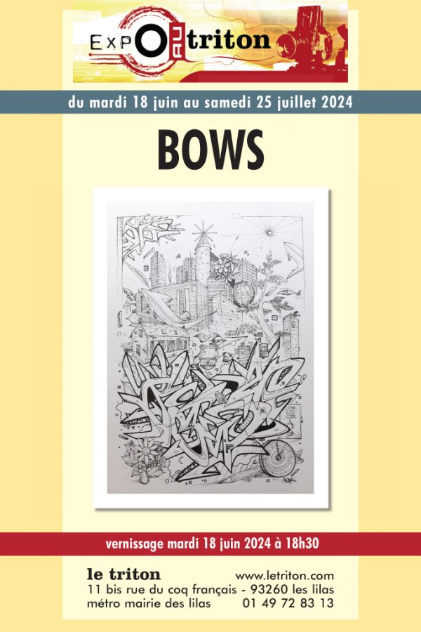 Bows est un artiste graffeur et beatmaker hip-hop issu du collectif Anthropoworks. Il peint depuis plus de 20 ans. Le wildstyle et l'abstract letters marquent ses peintures par des lettrages peu lisibles et des formes qui s'entrevauchent, laissant place à l’imaginaire de chacun·e. L’entremélage des lettres et des couleurs caractérise son travail. Bows peint principalement sur murs et sur toiles, avec des techniques et outils divers. Il réalise également des performances live lors de certains événements. Aimant évoluer dans son travail, il renouvelle sa créativité au fur et à mesure, par de nouvelles approches. La peinture est, pour cet artiste, une recherche de soi constante en explorant les inconnues que la démarche créative peut faire découvrir. C'est un lien vers l'extérieur, vers l'Autre, vers le monde. C'est un réel moyen de rencontre qui peut donner des possibilités d'échanger et améliorer le « vivre ensemble ». Bows perçoit la vie pleine d'émotions, pleine de couleurs... Sa devise : « Color is Life! »