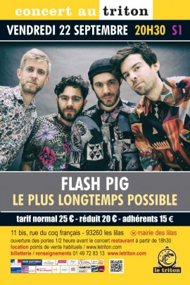 Né d’une volonté commune de jouer une musique ouverte, sans compromis, et qui ne tournerait pas le dos à une certaine tradition du jazz, Flash Pig est un quartet créé en 2008 qui trouve son inspiration autant dans le travail et l’écriture de la scène free des années 70 (Keith Jarrett, Ornette Coleman, Paul Motian), que dans le son et l’esprit de certains musiciens contemporains. Récompensé par de nombreux prix, le quartet a enregistré à ce jour quatre disques (le dernier, « Le plus longtemps possible », est sorti sur le label Astérie en 2022) et joue un répertoire constitué de compositions personnelles, qui permettent aux quatre musiciens de proposer un jazz ouvert, décomplexé, et en permanente évolution.