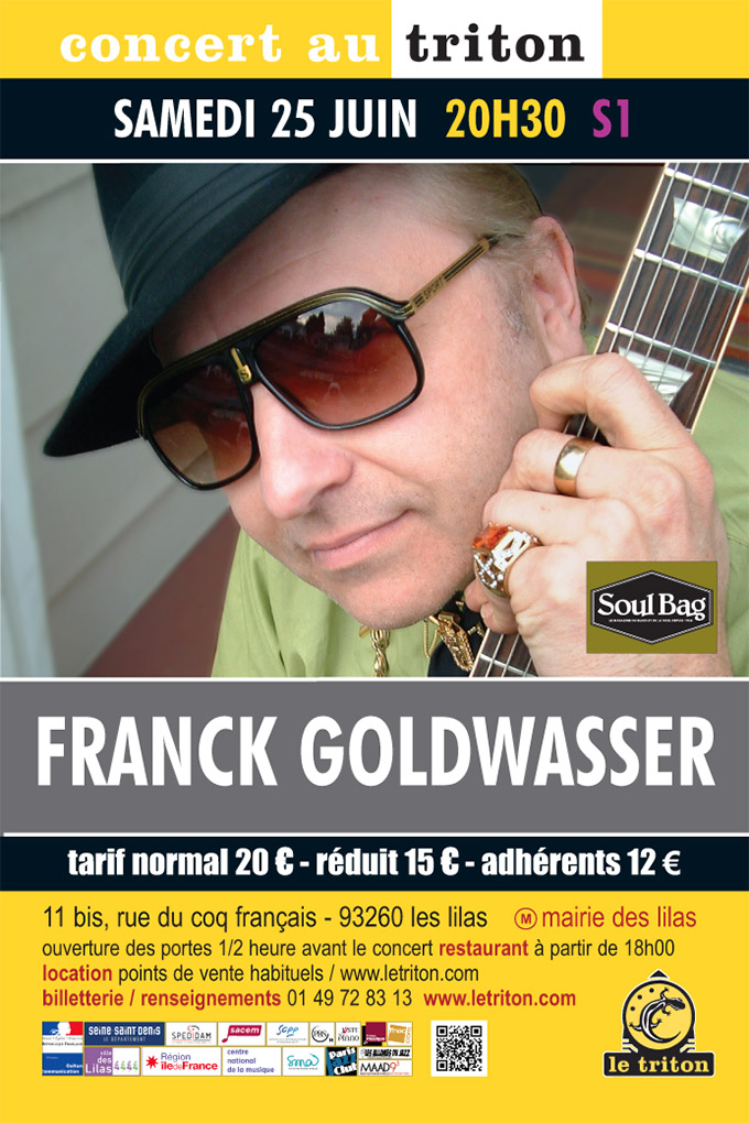 Franck « Paris Slim » Goldwasser, voilà un Français, né à Paris en 1960, qui a su avec brio s’imposer sur la scène blues de Californie et qui est sans doute aujourd’hui l’un de nos bluesmen les plus connus et reconnus dans le monde. Après quarante ans passés dans les tranchées de la scène blues de la Côte Ouest américaine, et ayant eu comme mentors des artistes Californo-Texans tels Jimmy McCracklin, Lowell Fulson et Sonny Rhodes, Franck Goldwasser rend ce soir un hommage à ce jazz-blues gorgé de soul en s’entourant d’un trio (d)étonnant qui lui fournit un contexte ample, puissant et multi-dimensionnel lui permettant d'évoluer aux confins du blues, de la soul music et du funk.