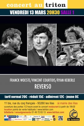 Reverso est un groupe transatlantique regroupant des improvisateurs hors pair, à l’aise dans le jazz comme dans le classique. Sa musique s’inspire de l’esthétique des compositeurs du groupe de six (Poulenc, Milhaud, Honegger, Auric, Tailleferre et Durey). Jean Cocteau disait que le seul point commun entre ces compositeurs, à part leur amitié, était le "sauvetage de la ligne mélodique". Frank Woeste, co-leader et compositeur du groupe, a su développer, au fil des albums et des tournées, un langage singulier qui fait de lui un artiste inclassable et polymorphe, sideman de musiciens prestigieux mais également producteur. Vincent Courtois, violoncelliste épatant, est aussi à l’aise dans le répertoire classique que dans les improvisations libres ou encore dans la chanson. Ryan Keberle, autre co-leader et compositeur du groupe, est un tromboniste incontournable de la scène new yorkaise, que ce soit avec son groupe “Catharsis” ou avec Maria Schneider et Dave Douglas. Tous trois prolongent, avec des références nouvelles, la même ambition,