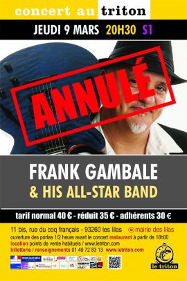 Connu dans le monde entier pour ses 36 ans en tant que guitariste aux côtés de la légende du jazz Chick Corea, Frank Gambale a également une superbe carrière solo. C’est un grand honneur pour nous de le recevoir pour la première fois sur notre scène, où il sera entouré des trois jeunes et très talentueux musiciens qui composent sa formation « All-Star ». En trio, Frank Gambale nous présentera un large éventail de ses plus grands tubes ainsi que de nouveaux morceaux, spécifiquement écrits pour ce groupe All-Star. La musique contagieuse et joyeuse de Gambale et sa maîtrise absolue de la guitare se combinent jusqu’à inspirer cette citation du maître Chick Corea "Frank est l'un des meilleurs guitaristes à avoir jamais marché sur la planète" et du guitariste Pat Metheny pour dire "J'aimerais prendre un mois de congé et étudier avec Frank Gambale". John McLaughlin, quant à lui, s’amuse du brio de son compère guitariste en affirmant : "Je veux lui couper les mains". Quel hommage ! Un événement à ne manquer sous aucun prétexte…