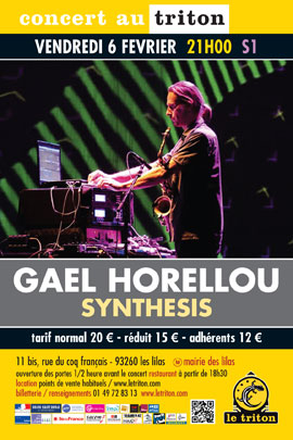 Fort de 15 ans d'expériences de fusion du jazz et de la musique électronique, Gael Horellou formule une nouvelle approche du genre. L'univers instrumental est issu du Jazz : grooves ternaires, contrebasse, batterie, saxophone et un élément à la fois percussif et atmosphérique avec le vibraphone. L’ajout de sonorités électroniques et d’effets repositionnent le son de Synthesis vers le dub, sans pour autant en reproduire les rythmes ni les codes. Il s'agit donc d'un son nouveau : une sorte de jazz hypnotique et spatial du XXIème siècle. A la fois mélodique et anguleux.
