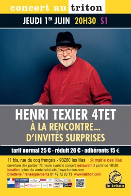 « Et les Rencontres avec un grand R continuent au Triton... Les Jazzmen ont toujours été passionnés de rencontrer d’autres musiciens, d’autres artistes, de partager leurs improvisations et de ressentir de nouvelles émotions aux contacts de multiples créateurs. Avec Sébastien, Manu et Gautier, nous avons imaginé d’inviter à venir partager nos musiques en toute liberté deux beaux musiciens, un trompettiste brillant et subtil qui au travers du langage de ses illustres prédécesseurs, raconte sa propre histoire d’une grande sensibilité et un saxophoniste qui, lui aussi, invente avec originalité son propre langage au moyen du riche vocabulaire de notre si belle et si créative musique : le Jazz... Deux belles surprises ! » Henri Texier