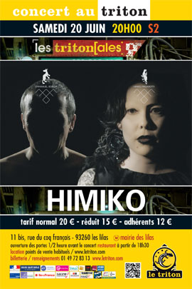 « HIMIKO » en japonais, veut dire beauté secrète... Le groupe de pop-électro HIMIKO, est né de la rencontre de deux musiciens de la scène Prog-Rock atternative, Himiko Paganotti et Emmanuel Borghi. HIMIKO vient vous présenter son 1er album "Nebula" qui est pour eux comme une renaissance, et pour nous la confirmation de leur talent d'auteur-compositeur.