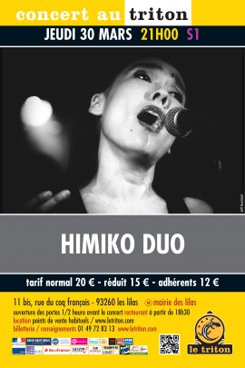 Pour leur premier rendez-vous dans le cadre de leur résidence au Triton pour l'année 2017, Himiko Paganotti & Emmanuel Borghi ont choisi de se présenter en duo. Un an après leur premier concert dans cette formule, ils reviennent nous faire partager leur univers intimiste et poétique ponctué par les belles images de Fanny Castaing. HIMIKO en duo, c'est l'essence même de ce projet qu'ils peaufinent depuis bientôt 10 ans. À l'occasion de ce concert, l'album du groupe au grand complet sera disponible et c'est avec plaisir qu'ils vous en offriront la primeur.