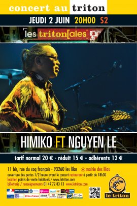 Après leur dernier concert en duo, le couple Himiko Paganotti-Emmanuel Borghi poursuit sa quarte blanche au Triton avec son groupe HIMIKO sous sa forme traditionnelle du quartet familial, avec le mythique Bernard Paganotti et Antoine, son fils. Ce soir, c'est une affiche magnifique qu'ils nous offrent en invitant le guitariste Nguyen Lê. Entre lui et la chanteuse Himiko, c'est déjà un long et riche compagnonnage puisqu'elle participe depuis plusieurs années à la quasi-totalité des projets du guitariste, notamment autour des Pink Floyd, de Jimi Hendrix et de Bob Marley. C'est donc tout naturellement qu'Himiko a pensé à Nguyen pour ce concert. L'histoire continue !