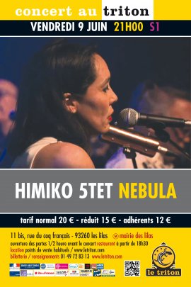 Après le premier volet de leur résidence en duo, “Himiko” se présente ce soir en quintet, celui de l’album “Nebula”, le premier du groupe, dont ils nous livrent ce soir la présentation, en première mondiale. Cette formation, réunie pour la première fois sur la scène du Triton l’an dernier, nous a bouleversés et convaincus de la pertinence de recevoir “Himiko” en résidence de création au Triton. L’énergie instrumentale se teinte de la chaleur de la voix unique d’Himiko Paganotti au service d’une musique puissante et aboutie, directe, ciselée, envoutante...