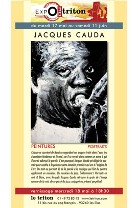 Chacun se souvient de Narcisse regardant ses propres traits dans l’eau, jeu ô combien fondateur et fécond, car il se voyait alors comme un autre à qui il aurait adressé la parole. C’est pourquoi Jacques Cauda privilégie le portrait pour rendre à la peinture cette émotion première qui est à l’origine de l’art. Du trait au portrait. Et de la parole à la musique qui fait du peintre également un musicien. Un musicien de jazz. Évidemment ! Portraits en noir & blanc, avec lesquels Jacques Cauda retrouve le grain de l’image comme de la voix de ce passé du jazz conjugué au présent perpétuel.
