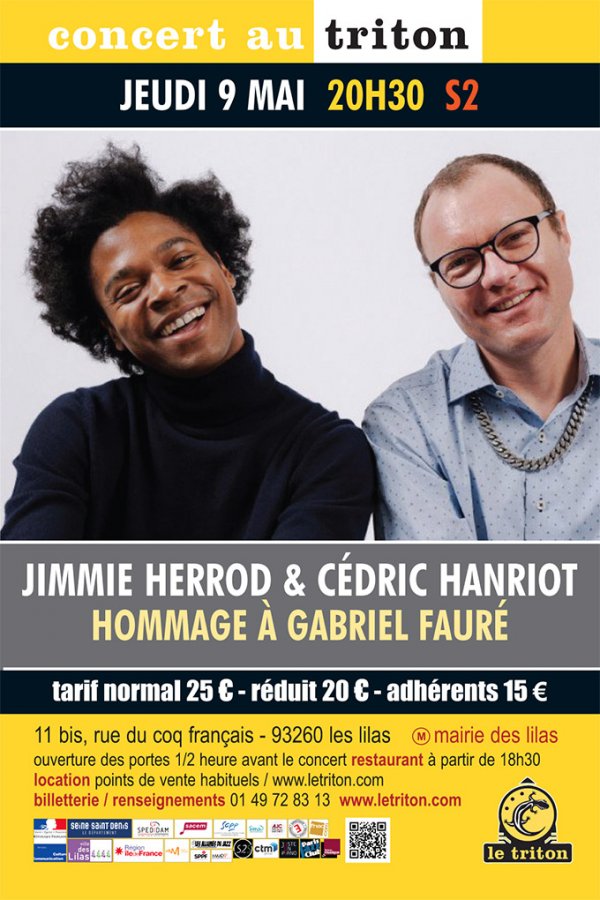 Le pianiste de jazz Cédric Hanriot, connu pour son approche transversale de la musique et le chanteur Jimmie Herrod (America Got Talent, Brian Blade, Pink Martini), se retrouvent pour leur premier disque en duo, dans une interprétation libre et inédite où leur amour de la musique impressionniste s'épanouit au contact du jazz. Ensemble, ils explorent un classique du répertoire français : les mélodies de Gabriel Fauré. Jimmie et Cédric en proposent une nouvelle vision entre chanson et improvisation jazz, atypique, pop et ouverte sur notre époque !
