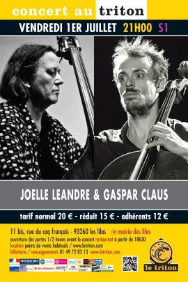 Quand on connaît Joëlle et Gaspar, on a particulièrement hâte d’assister à leur rencontre... D’un côté, Joëlle Léandre, cette immense dame qui fait swinguer sa contrebasse depuis 45 ans, cette légende vivante de l’improvisation, cette avant-gardiste survoltée, cette ambassadrice révoltée... De l’autre, Gaspar Claus, ce jeune musicien tout-terrain qui voyage entre les univers des musiques actuelles, improvisées, contemporaines et traditionnelles (Angélique Ionatos, Pedro Soler), ce dandy qui oeuvre sur son violoncelle avec la même fougue, le même génie et la même générosité que son ainée. Ce soir, ces deux-là vont enfin pouvoir s’exprimer d’une seule voix !