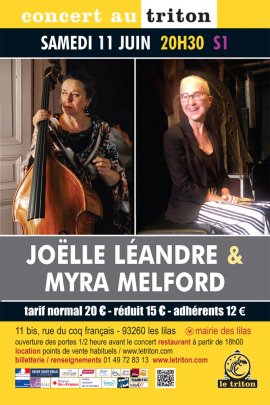 Lorsque Joëlle Léandre vient au Triton, ce qui n’est pas tout à fait rare depuis l’ouverture de notre lieu il y a 22 ans, elle est toujours animée par l’envie de nous faire découvrir l’une des innombrables facettes de son incroyable vie artistique. Chaque fois, elle nous a surpris, embarqué, conquis. Ce soir, c’est avec l’illustre pianiste, compositrice, chef d'orchestre et professeure à l'université de Berkeley, Myra Melford, véritable "pilier du nouveau jazz", que Joëlle nous invite à un nouveau voyage. Une écoute immense, rapide, véloce et élégante. Un duo qui tresse des bouts de musique, des temps suspendus et de bien belles histoires. Un duo qui se caractérise par une quête d’improvisation absolue, une exigence tout en légèreté et surtout, évidemment, une musique qui n’a que la liberté pour seule contrainte.