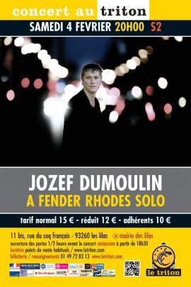 “Un des précurseurs les plus inventifs dans son genre”, “sorcier du piano”, ou “le spécialiste du Fender Rhodes”, telles sont le citations qui se réfèrent à Jozef Dumoulin. Après une longue expérience avec une multitude de groupes différents, il se met maintenant seul sur scène avec son arme astrale, le Fender Rhodes, pour évoquer un univers unique d’électro libre. Nourri de jazz, de pop ou de musique classique il nous emmène ici de façon très personnelle dans les espaces les plus aventureux de la musique de ce début de siècle. Son cd ‘A Fender Rhodes Solo’, une première mondiale pour cet instrument, est sorti début 2014 sur Bee Jazz et a été récompensé par la presse internationale (**** Downbeat, Top Cd à Jazznews Magazine, Disque Élu sur Citizen Jazz, …). Depuis lors ce programme a pu grandir, murir et se nourrir de plein de nouvelles aventures. Jozef prépare actuellement le prochain enregistrement solo.