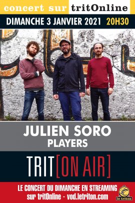 Le nouveau projet de Julien Soro est un trio à l’instrumentation originale, un saxophone ténor et deux percussions (vibraphone et batterie), et modulable puisque deux claviers- synthés sont greffés à l’orchestre de base et joués par intermittence par le vibraphoniste et le saxophoniste.