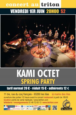 Kami Octet joue un répertoire écrit autour du thème de la marche au long cours. Pèlerinage, voyage initiatique la musique du nouvel album “Spring Party” vous invite dans l’univers d’un personnage traversant des paysages imaginaires. Alliant écriture et improvisation, le répertoire de Kami Octet emmène vers les profondeurs de climats intimistes où les voix se mêlent pour mélanger leurs timbres puis surgissent portées par l’énergie élémentaire d’une rythmique terrienne. Des moments de puissance orchestrale, des fragments de poésie déclamés sur une musique de chambre tendue comme un fil suspendu d’où émergent de belles improvisations.