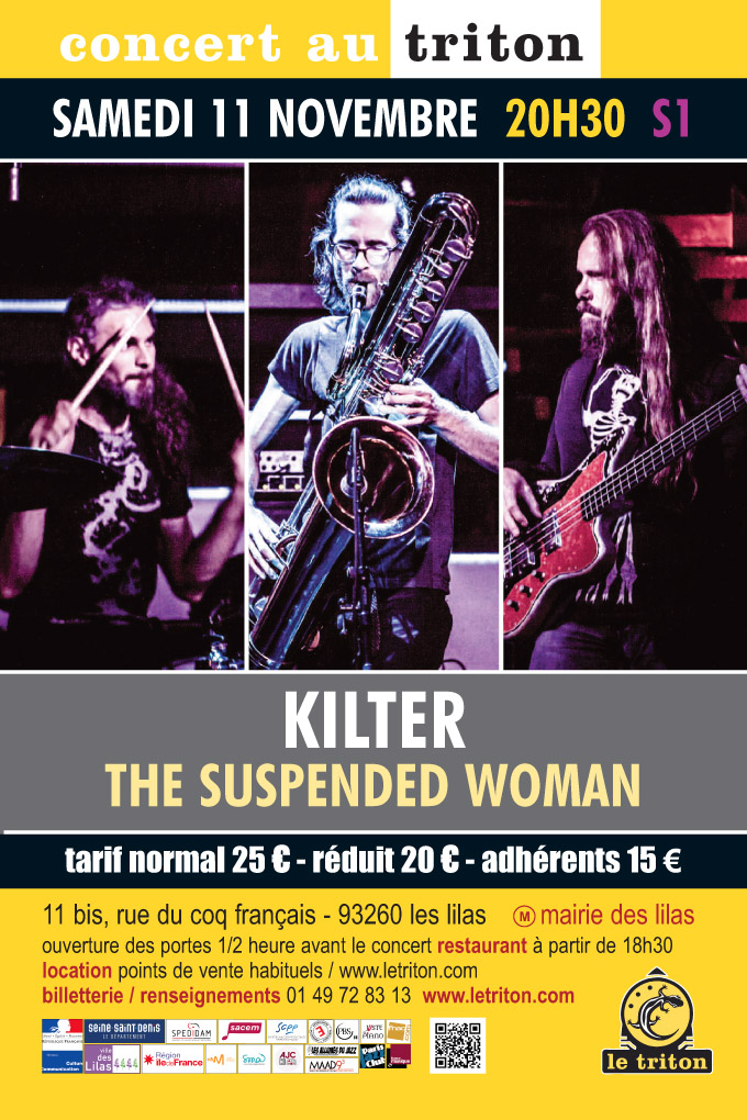 En parallèle de la création scénique en grand format de l’opéra La Suspendida, KILTER propose un concert de titres issus de celui-ci arrangés pour trio Batterie, Basse Électrique et Saxophone Basse. A la manière des "Four Sea Interludes from Peter grimes", du compositeur Benjamin Britten, KILTER propose ici de découvrir l’essence même de leurs compositions. Le jazz metal de Laurent David, Kenny Grohowski et Ed Rosenberg III fusionne Drones, Blasts, Riffs, Patterns pour créer une expérience sonore unique.