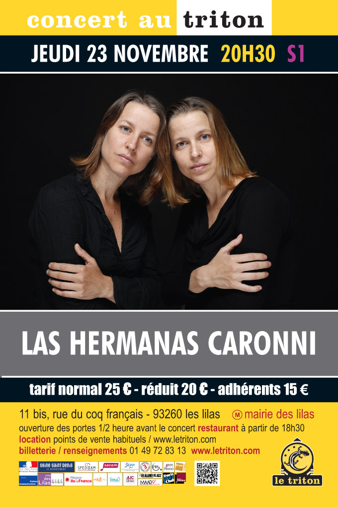 Instrumentistes, chanteuses et compositrices, Laura et Gianna Caronni forment un duo atypique de clarinette, violoncelle et voix. Leurs compositions sont solaires, nostalgiques et émouvantes. La musique d'Argentine, dont elles sont originaires, et la musique classique sont leurs principales sources d'inspiration, mais elles sont aussi influencées par le jazz, laissant souvent une part de leurs morceaux ouverts à l'improvisation lors des concerts. Leur premier disque sorti en 2011 est remarqué par Didier Varrod son émission quotidienne sur France Inter où il est élu album de l’année. Il rencontre aussi un bel accueil auprès du public et de la presse. Trois albums plus tard, elles se produisent régulièrement en France mais aussi en Europe et en Amérique Latine. Et ce soir sur notre scène, pour notre plus grand bonheur et celui de notre public qui, nous n'en doutons pas, sera emballé par cette belle découverte !