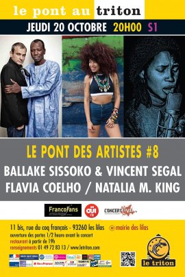 Programme de cette 8ème édition : FLAVIA COEHLO / BALLAKÉ SISSOKO & VINCENT SEGAL / NATALIA M. KING