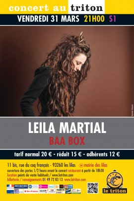 Une fantaisie (un brin de folie naturelle…) de tous les instants caractérise cette vocaliste virtuose qui sait garder fraîcheur et spontanéité tout en développant une démarche artistique bien claire... Leïla Martial met sa voix et sa présence au service d’une musique on ne peut plus originale, aux influences croisées (électronique, rock, improvisation, belles l’être…), avec la collaboration de ses comparses : effets, loops, font partie de la panoplie chère aux musiques actuelles, mais il y a bien sûr un réel sens de la mélodie, une énergie sans faille et de splendides fulgurances improvisées.