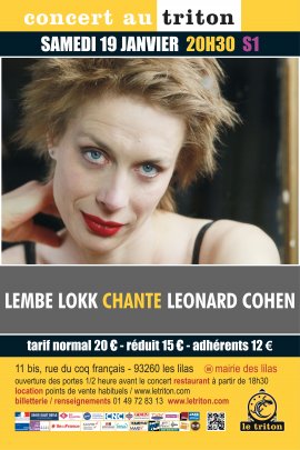 Lembe Lokk est une chanteuse et poète estonienne au parcours musical étonnant qui a traversé du jazz, des musiques improvisée et contemporaine ainsi que des cabarets de rue. Sa voix porte les couleurs riches et profondes de son chemin et aujourd’hui elle défend essentiellement ses propres chansons qui sont d’une poésie aussi radicale que mystérieuse. En novembre 2018, elle crée en solo un hommage à Leonard Cohen, envoûtée par l’acoustique d’une église de Seine et Marne et le souvenir de cet artiste dont la poésie sombre mais amoureuse a marqué son adolescence. A l’occasion de son retour au Triton, elle s’entoure de deux musiciens de talent pour mieux encore explorer l’intimité des chansons de Cohen.