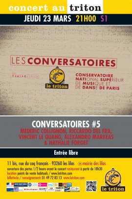 Médéric Collignon, Riccardo Del Fra, Vincent Le Quang, Alexandros Markeas & Nathalie Forget ; professeurs au Conservatoire de Paris présentent Les Conversatoires #5 sur Tritonline.