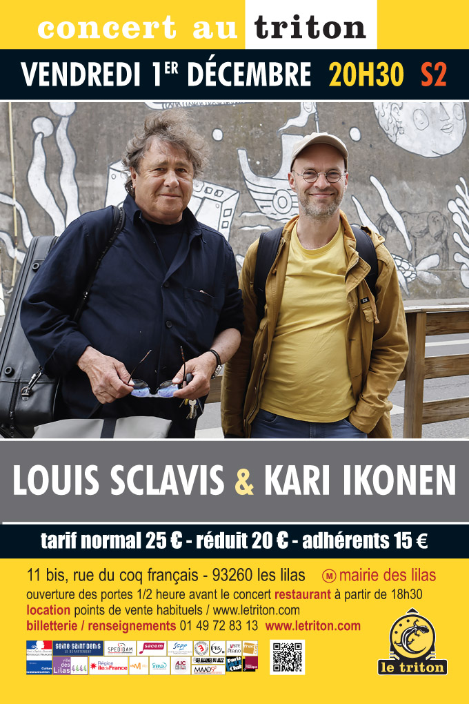 Aves ses duos de feu aux côtés de Joachim Kühn, Bernard Lubat, Aki Takaze, Benjamin Moussay ou François Raulin, on peut dire que Louis Sclavis est un grand habitué des excellents pianistes. Pour la première fois au Triton, il nous présente ce soir un tout nouveau duo avec un maestro du piano, le Finlandais Kari Ikonen. Au sujet de cette rencontre, voilà ce que nous raconte Louis Sclavis : "A travers nos concerts avec Kari, j’ai découvert sa maitrise des différents langages du jazz, son travail très personnel avec le moog ainsi que ses recherches sur toutes les possibilités de timbre du piano, notamment l’usage des quarts de ton. Son approche de l’improvisation me permet de développer avec lui une musique évidente où mon vocabulaire trouve naturellement sa place."