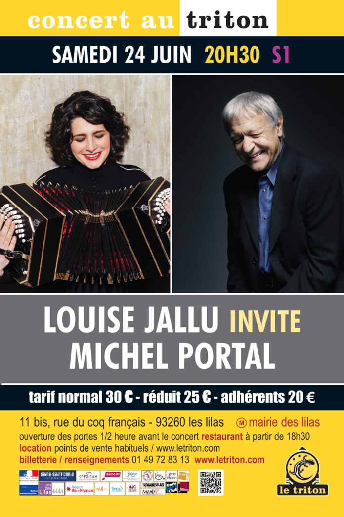 Depuis le succès de ses deux premières créations “Francesita“ et “Piazzolla“, unanimement saluées et de nombreuses fois récompensées, la jeune Louise Jallu en plus d’être virtuose du bandonéon, est reconnue comme une artiste à la vision musicale éclairée, et dont les projets futurs seront à suivre avec attention. Louise Jallu entame à la Villa Médicis l’écriture d’une nouvelle création qui sera cette fois centrée sur des compositions, empruntes de citations ou d’allusions à des genres musicaux issus de différentes cultures (musique classique, jazz, chanson, tango, musiques du monde). Son nouvel album “Jeu“ décline tout ce que ce vocable peut contenir de se mettre en jeu au jeu d’écriture. À la manière dont les artistes-peintres prenant appui sur les œuvres du passé, seront “convoqués“ des compositeurs aussi éloignés dans leurs expressions que Fritz Kreisler, Georges Brassens ou encore notre Ravel national, pour les conduire dans un tout autre univers sonore et leur convier ici une tout autre expression. En équilibre entre révérence et irrévérence, entre veine populaire et legs patrimonial, ce nouveau répertoire nous fera découvrir une compositrice et interprète à la démarche aussi intuitive que savante, libre à l’égard des dogmes, empruntant à ces figures tutélaires pour leur restituer une tout autre modernité. Pour ce concert exceptionnel au Triton, Louise invite le monument, le monstre sacré, la légende vivante du jazz, Michel Portal, qui fut bien séduit par sa manière de s’approprier le bandonéon. Une rencontre au sommet entre deux immenses artistes.